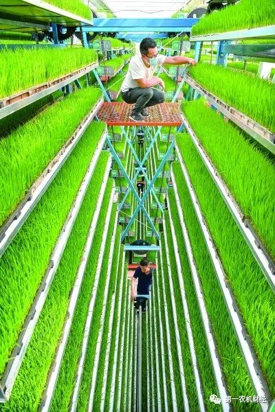在湖南省益陽(yáng)市赫山區(qū)的智慧農(nóng)業(yè)育秧工廠,3000多平方米的現(xiàn)代化溫室大棚里,一盤(pán)盤(pán)待栽插的秧苗生機(jī)勃勃,一臺(tái)臺(tái)高大的循環(huán)立體運(yùn)動(dòng)式育苗設(shè)備上下交替,讓秧苗得到充分的光照,即將為萬(wàn)余畝稻田提供優(yōu)質(zhì)機(jī)插秧苗。